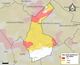 La commune est vulnérable au risque de mouvements de terrains constitué principalement du retrait-gonflement des sols argileux[23]. Cet aléa est susceptible d'engendrer des dommages importants aux bâtiments en cas d’alternance de périodes de sécheresse et de pluie. 75,6 % de la superficie communale est en aléa moyen ou fort (90,2 % au niveau départemental et 48,5 % au niveau national). Sur les 81 bâtiments dénombrés sur la commune en 2019, 36 sont en aléa moyen ou fort, soit 44 %, à comparer aux 91 % au niveau départemental et 54 % au niveau national. Une cartographie de l'exposition du territoire national au retrait gonflement des sols argileux est disponible sur le site du BRGM[24],[25].