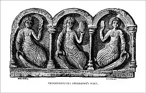 Plus exactement, Coventina est une déesse britto-romaine. Elle est connue par diverses inscriptions sur un site du comté de Northumberland au Royaume-Uni, dans l'environnement d'une source d'eau naturelle près de Carrawburgh (en) sur le mur d'Hadrien. Il est également possible que d'autres inscriptions, deux en Hispanie et une autre en Gaule narbonnaise, puissent se référer à Coventina, mais elles sont sujettes à débat[1].
