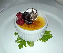 La crème brûlée, ou crème brulée[1], est un dessert composé de jaunes d'œufs, de sucre, de crème, de vanille et de caramel.