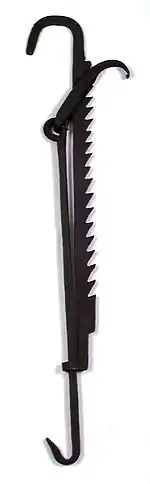 Le système de crans peut être remplacé par des ergots (crémaillère à ergots) ou par une série de trous (crémaillère à échelons). La bande de fer peut être simplement verticale ou former une croix – ce qui permet de suspendre au minimum trois marmites ; elle peut encore être en forme d'arc, de triangle, de cœur.