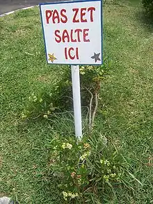 enan, napa, delo, semin, manman, zanbrozwa. Équivalents en créole mauricien : Ena, Napa, dilo, sime, mama, zanbourzwa.