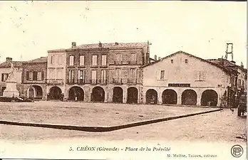 La maison commune ouvre sur la place, à l’alignement des maisons. Elle peut être à l’étage de la halle qui est située soit au centre, soit sur un des côtés de la place. À Créon, la place carrée est bordée d’arcades sur trois côtés et possède une halle qui disparaît en 1872. La mairie est construite à l’emplacement du siège de la prévôté.