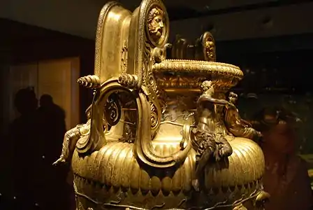 Pesant 40 kg, le cratère est constitué de bronze savamment dosé qui lui permet d'afficher une superbe dorure sans pour autant renfermer la moindre parcelle d'or.
