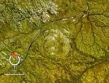 Bien qu'il ne soit pas visible depuis la surface, sa forme sur les photos aériennes et photos satellite est caractéristique et a conduit à sa découverte[1].