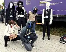 (de gauche à droite) : Slender Man, Jeff the Killer, Laughing Jack, Eyeless Jack, Ticci Toby et un autre Slender Man.