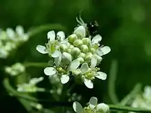 Les fleurs sont petites et blanches. La floraison se déroule de mai à juillet.
