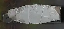 - Le panneau explicatif du musée précise : « Les pointes foliacées étaient probablement des pointes de lance. Elles figurent parmi les tout premiers objets reconnaissables fabriqués en Grande-Bretagne par des hommes modernes. Celle-ci en est un particulièrement bon exemple. Âge : 38 000 à 35 000 ans AP. »