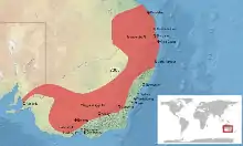 Aire de répartition de l'espèce Crinia parinsignifera selon l'UICN (consulté le ).