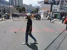 Blocage humain à Calacoto.