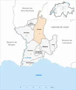 | Communes limitrophes | Mex (VD), Sullens, Cheseaux-sur-Lausanne, Lausanne, Jouxtens-Mézery, Renens (VD), Écublens (VD), Bussigny, Villars-Sainte-Croix | |||