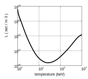 ne et les ni correspondant respectivement aux concentrations d'électrons et des différentes espèces d'ions, kB à la constante de Boltzmann et T à la température à laquelle les réactions sont portées. Ces réactifs se refroidissent spontanément en un temps caractéristique appelé temps de confinement et traditionnellement noté τE. Ce temps dépend du dispositif mis en place pour effectuer les réactions. On a ainsi, par unité de volume,