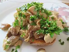 | Ingrédients | Champignons, crème fraîche, pain grillé… |