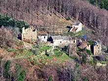 - cinq maisons, datant du XVIe siècle au XIXe siècle, toutes en schiste. Les toits sont couverts d'ardoise.