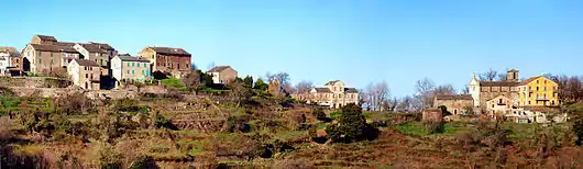 Comme beaucoup de villages, le village est bâti le long de l'arête sommitale, à une altitude moyenne avoisinant les 800 m. S'y trouvent la mairie-école, le monument aux morts ainsi que l'église paroissiale Saint-Césaire. Le cimetière se trouve plus à l'est, accessible depuis la jonction de la D 515 avec le chemin de Croce à Sainte-Marie, qui conduit à travers la châtaigneraie à la chapelle éponyme dominant le village voisin de Ficaja.