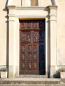 - un tableau La Vierge au rosaire avec saint Dominique et sainte Catherine d'auteur inconnu, est daté du la fin XVIe siècle. Il est classé au titre des Monuments historiques[24].