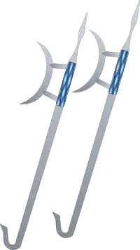 Certaines écoles de Ba Gua Zhang s'exercent aussi avec une arme similaire, souvent appelé « Couteaux des cornes du cerf (en) » ou « Couteaux du Canard mandarin ». Ces armes comportent typiquement un crochet principal beaucoup plus court ou même absent, et leur utilisation se concentre plus sur le découpage et les lames poignardantes disposées autour de la garde.