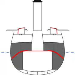 Pour engager un véritable combat d'artillerie, une protection est aménagée à l'intérieur du navire, sous le pont, autour de la machinerie. Il est armé d'une douzaine de canons de calibre 100 à 152 mm. L'augmentation progressive du blindage et de l'artillerie lourde augmente le poids de déplacement, rendant le navire moins manœuvrable.