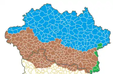 Aire linguistique du Croissant entre langue d'oïl et langue d'oc. | |
