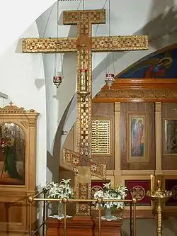 Au monastère de la Croix d'Onega, la croix est placée à l'endroit réservé à l'icône de la cathédrale près de l'iconostase aujourd'hui disparue.