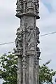 Les statuettes ne sont pas surmontées de dais, comme à Saillans ; pour les autres ornements, ils sont les mêmes, et disposés de la même façon :- en haut du fût, les attributs des Évangélistes;