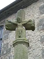 La croix est en granit, sculptée en haut d'une hampe, avec le Christ en croix ; ses montants sont à section hexagonale. La hampe aussi est hexagonale et comporte des bosses pour tenir le cercle en fer où se mettaient des branches de buis lors de certaines fêtes[1].