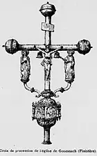 | Croix de procession de Guengat | Église Saint-Fiacre, Guengat | Y.S.[4] | 1584 | Classée le [5] | « Le type même de la croix finistérienne[4]. » | ![]() |