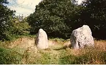 À l'extérieur du cercle se dressent deux menhirs d'une hauteur de 2,30 m et de 2,10 m[2].
