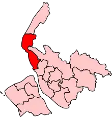 Carte de la circonscription de Crosby au sein du Merseyside en 2005.