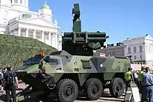 Finlande, 21 unités de Crotale NG sur un châssis de Patria Pasi 6x6 depuis les années 1990[9].
