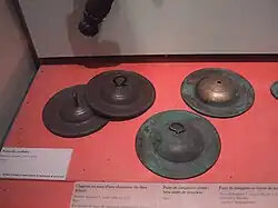 Les crotales sont dorénavant considérés comme un genre de batterie de disques épais en bronze, soutenus par leur centre, qui peut se jouer frappé à l'aide de maillets ou frotté par un archet. Leur nom est « cymbales antiques ».