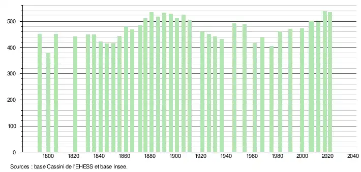 - Fiches Insee - Populations légales de la commune pour les années 2006, 2007, 2008, 2009, 2010, 2011, 2012, 2013, 2014, 2015, 2016, 2017, 2018, 2019, 2020 et 2021.