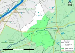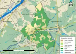 L'occupation des sols est marquée par l'importance des espaces agricoles et naturels (100 %). La répartition détaillée ressortant de la base de données européenne d'occupation biophysique des sols Corine Land Cover millésimée 2012 est la suivante : terres arables (11,5 %), zones agricoles hétérogènes (28,6 %), forêts (60 %), eaux continentales (0,5 %)[13].