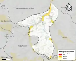 Le retrait-gonflement des sols argileux est susceptible d'engendrer des dommages importants aux bâtiments en cas d’alternance de périodes de sécheresse et de pluie. 7 % de la superficie communale est en aléa moyen ou fort (84,7 % au niveau départemental et 48,5 % au niveau national). Sur les 335 bâtiments dénombrés sur la commune en 2019, 17 sont en aléa moyen ou fort, soit 5 %, à comparer aux 86 % au niveau départemental et 54 % au niveau national. Une cartographie de l'exposition du territoire national au retrait gonflement des sols argileux est disponible sur le site du BRGM[21],[22].