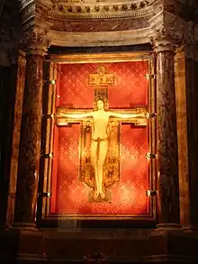En 1584, Angelo Peruzzi, pendant une visite apostolique, le voit exposé sur l'autel de la Purificazione della Beata Vergine Maria affirmant que l'autel « habet iconam cum imagine Crucifixi, in actu quo Nicodemus corpus D.N. Jesu Christi levavit de cruce, cum multis aliis imaginibus, ita quod redditur valide ornatum »[4].