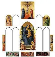 À la fin du XVIe siècle, le polyptyque est retiré de l'autel, lorsque le jubé contre lequel la chapelle est adossée est démoli[2], et par la suite démantelé et dispersé[1]. Une tentative de reconstruction est rendue possible grâce à une description détaillée de l'œuvre par Vasari. Onze morceaux des dix-sept panneaux (au moins) qui composaient l'œuvre ont été trouvés à partir de 2010, mais ils sont insuffisants pour reconstituer de manière fiable son ensemble.