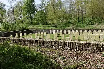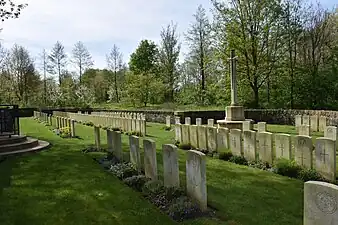 Ce cimetière contient 215 sépultures du Commonwealth de la Première Guerre mondiale dont 74 ne sont pas identifiées. Il y a également deux sépultures de soldats allemands[2],[3].