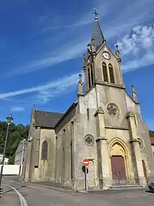 - Église Sainte-Barbe commanditée par la famille de Wendel en 1939 et réalisée par l'entreprise de Ferdinand Fillod, est l'une des seules églises, à structure métallique, entièrement construites en fer en Europe. Elle fut classée monument historique par arrêté du [26]. (restaurée en 2006)[27].
