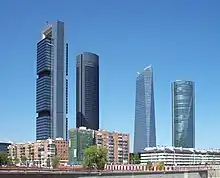 Les quatre immeubles constituent les plus hauts édifices de Madrid et d'Espagne. On trouve du nord au sud :