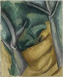 Le cubisme cézannien est le cubisme tel qu'il est pratiqué en 1908 et 1909, soit durant les premières années de ce mouvement artistique, par les peintres Georges Braque et Pablo Picasso principalement. Il se caractérise par la soumission de leur peinture à l'influence de Paul Cézanne, une influence visible dans son recours aux volumes géométrisés et aux couleurs ocres ponctuées de vert que l'on trouve dans l'œuvre du maître disparu en 1906. Georges Braque et Raoul Dufy travaillent en outre le paysage sur les lieux-mêmes où Cézanne a peint, notamment à L'Estaque, dans le sud de la France. Au bout de deux ans, le ton des tableaux glissant vers le gris et les objets représentés éclatant pour ne plus laisser voir que des arêtes noires disjointes, ce premier cubisme laisse la place à un cubisme analytique plus hermétique où le prédécesseur n'est plus évoqué que par ses natures mortes et ses motifs typiques tels que le compotier.