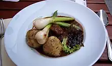 - (de) Cet article est partiellement ou en totalité issu de l’article de Wikipédia en allemand intitulé « Deutsche Küche » (voir la liste des auteurs).