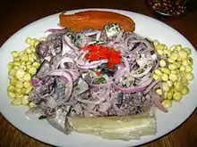 - (es) Cet article est partiellement ou en totalité issu de l’article de Wikipédia en espagnol intitulé « Gastronomía criolla » (voir la liste des auteurs).
