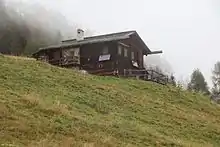 Kirchner est entré pour la première fois dans ce petit chalet de montagne, loué par un paysan, au début de l'été 1918. Le chalet était alors peu aménagé, mais Kirchner a pu y peindre en été. En , il a écrit à son ami Henry van de Velde, que « Les chambres sont très inhabituelles, les interstices sont remplis de mousse et il y a un magnifique poêle ventru dans la cuisine ». C'est ici que Kirchner a passé les étés de ses premiers séjours à Davos. Il se sentait en bonne santé et pouvait peindre. Mais déjà, à Noël 1918, il n'est plus en mesure de terminer ses tableaux.