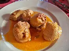 Le gratin dauphinois (ou pommes de terre à la dauphinoise) est un mets français, d'origine dauphinoise, à base de pommes de terre et de crème liquide. Ce plat traditionnel possède une recette officielle, celle d'Autrans[26]. Si on utilise du fromage (emmental, gruyère râpé, etc.) il ne s'agit alors en aucun cas d'un gratin dauphinois : cet ajout le transforme en gratin savoyard.