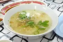 Aux Philippines, Arroz caldo est un gruau de riz et de poulet relevé de gingembre, ail grillé, oignons verts et poivre noir, sa variante Goto (arroz caldo con goto, au bœuf, abats de porc, sauce soja, œuf dur et calamondin. La forme la plus simple de congee philippin est le lugaw : riz gluant cuit à l'eau, salé ou sucré, avec du lait ce coco en dessert [26]. En Indonésie, le tinutuan (bubur manado) est un congee compliqué : potiron, patate douce ou de manioc, maïs, légumes-feuilles et un luxe de garnitures avec une prédominante de poissons [27]. En Corée, les Juk (죽; 粥; [tɕuk̚]) sont des congee ou des bouillies : le Daechu-gom (대추곰) est a base de farine de riz gluant avec des jujubes, Euneo-juk (은어죽; 銀魚粥) est au poisson doux souvent épicé, parfois avec ginseng, Jatjuk (잣죽) aux pignons de pin, Tarak-juk est une bouille de riz glutineux broyé et moulu, cuit au lait - tarak a une étymologie mongole (ᠲ᠋ᠠ᠊ᠷᠠ᠊ᠬ) - servi salé/sucré (au miel) [28].