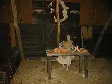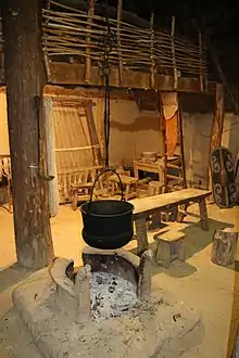 Reconstitution d'un intérieur gaulois de l'oppidum de Bibracte, capitale du peuple celte des Éduens, en actuelle Bourgogne-Franche-Comté. | |