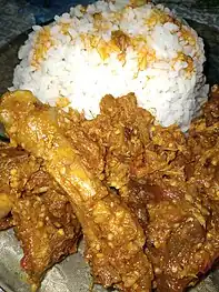 Riz au gras guinéen, souvent servi lors des cérémonies dans cette région. C'est le plat principal à Conakry et dans toute la basse côte[7],[8],[9],[10].