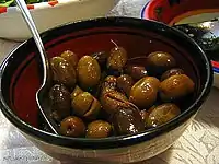 Salade ḥatzilim (caviar d'aubergines) servie aussi en Syrie, Liban (baba ganoush), Égypte ou Turquie.