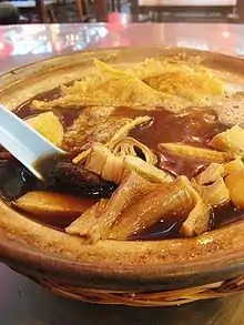 - Ayam/Babi pongteh : ragout de poulet ou de porc cuit avec du tauchu ou avec des pousses de soja fermentées et du gula melaka. Il est habituellement sucré-salé.