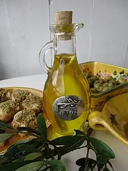 L'huile d'olive de Nice est protégée par une appellation d'origine contrôlée (AOC). Comme toutes les autres huiles d'olive issues du pourtour de la Méditerranée et des régions à climat méditerranéen, elle est un des fondements de la cuisine méditerranéenne (ou régime crétois et principale source d'oméga -9). Ses caractéristiques organoleptiques varient en fonction du terroir et des pratiques agronomiques, de la variété (ou cultivar), et du stade de maturité à la récolte. Elle peut être utilisée aussi bien crue (dans des sauces pour salade ou à la place du beurre dans les pâtes par exemple) que cuite (pour la cuisson de viandes ou de légumes ou pour la friture). Cette huile a des propriétés bénéfiques pour la santé, notamment sur le plan cardio-vasculaire, grâce à sa teneur en vitamine A, vitamine E et en acides gras mono insaturés. Les bienfaits liés aux vitamines sont surtout observés lors de consommation d'huile froide, comme dans les salades, car les vitamines sont détruites au-delà de 40 °C. Par rapport aux autres acides gras insaturés, l'huile d'olive est assez stable à la cuisson et garde en ce cas ses effets bénéfiques sur le cholestéroll.