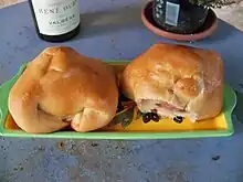 Le pan bagnat (pan banhat) est un sandwich niçois constitué de thon, salade, poivrons et tomates, agrémentés d'huile et de vinaigre, placés dans un petit pain rond réalisé spécialement à cet effet.